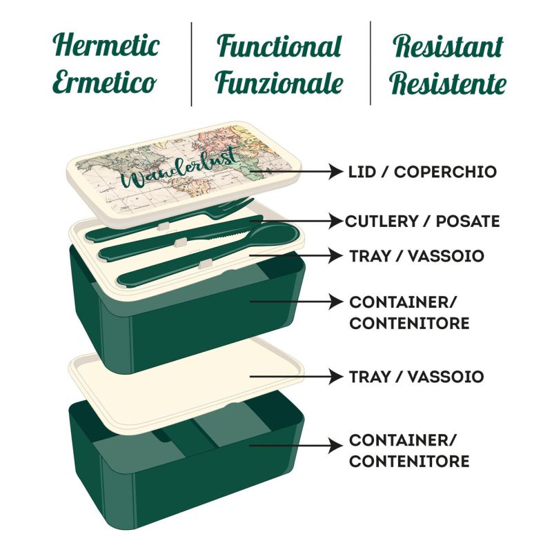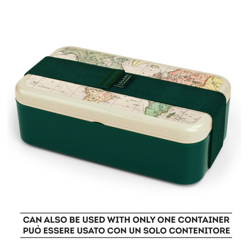 Το φανταστικό Lunch Box της Legami είναι εδώ για να απολάυσετε το μεσημεριανό σας διάλειμμα! Ιδανικό για μεταφορά γευμάτων και σνακ όπου και αν βρίσκεστε. Με δύο δοχεία που κλείνουν με απόλυτη ασφάλεια από δύο δίσκους που αποτρέπουν τυχόν διαρροή υγρών ή διαφυγή οσμών στην τσάντα σας. Μπορεί να τοποθετηθεί σε φούρνο μικροκυμάτων. Περιλαμβάνει 2 δοχεία φαγητού, 2 δίσκους και σετ με πιρούνι, μαχαίρι και κουτάλι. Μπορείτε να χρησιμοποιήσετε μόνο ένα δοχείο ή και τα δύο, καθώς περιλαμβάνεται ανθεκτική ελαστική ταινία που συγκρατεί τα δύο δοχεία μεταξύ τους.